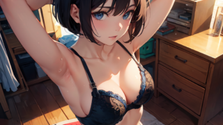 (bare arms, bare shoulders:1.3), (cameltoe:1.1), fantasy cloth, (open clothes:1.2), (see-through black Tailored fit dress:1.6), (blue frill panties:1.4),